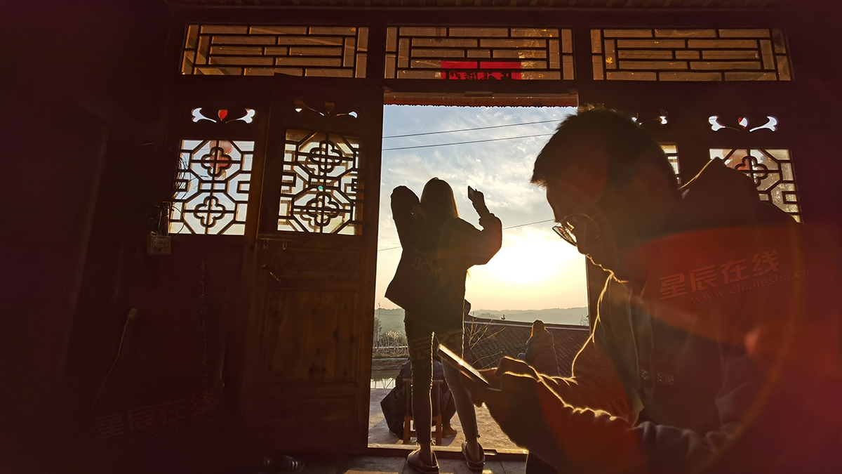 完成了当天的拍摄任务,忙中偷闲,大家沐浴在杨木村的夕阳中。