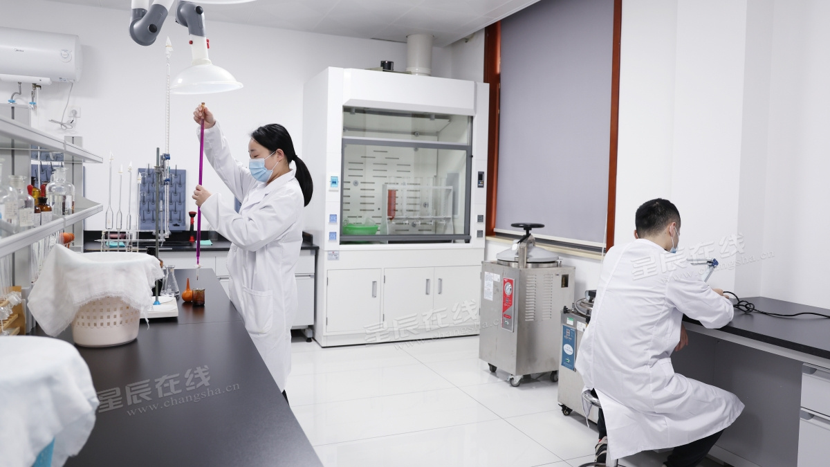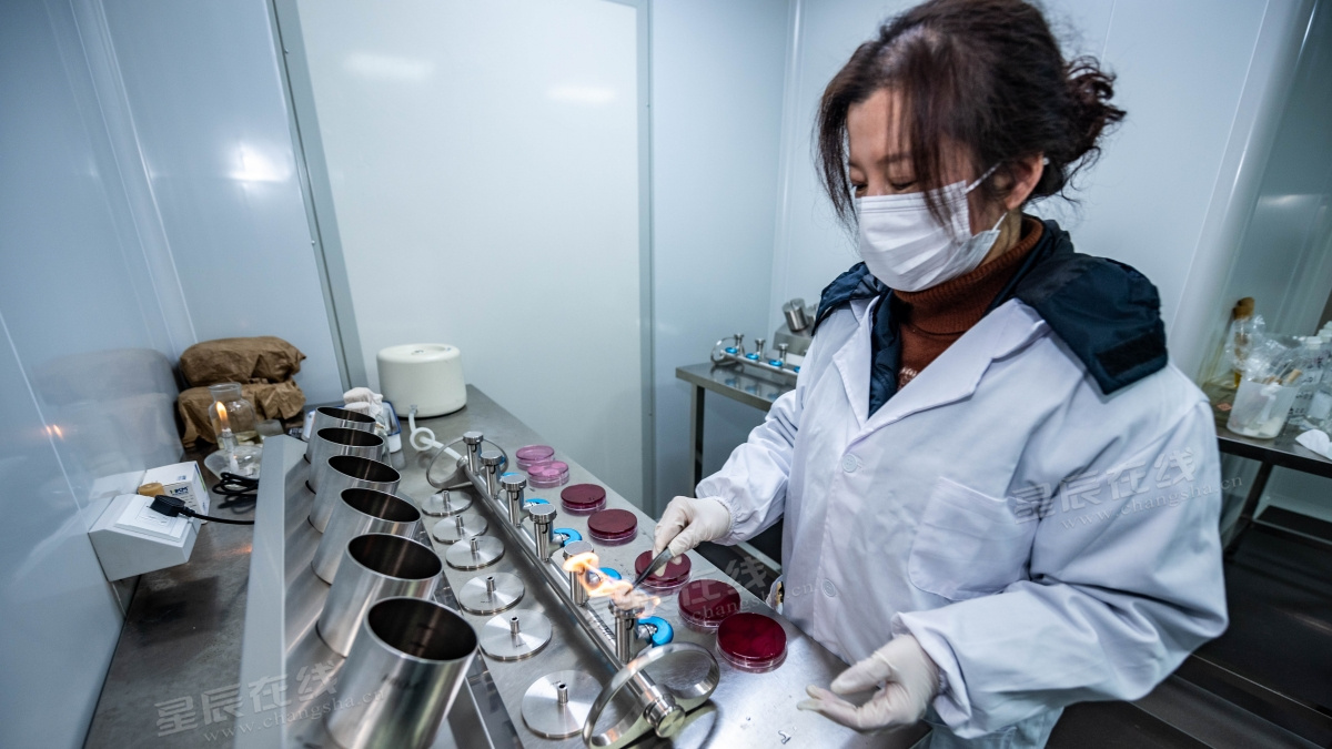 4.工作人员在给微生物检测滤器消毒。
