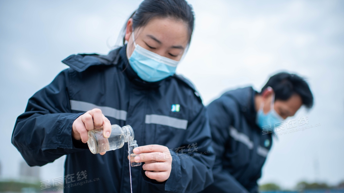3.工作人员在采集水样。