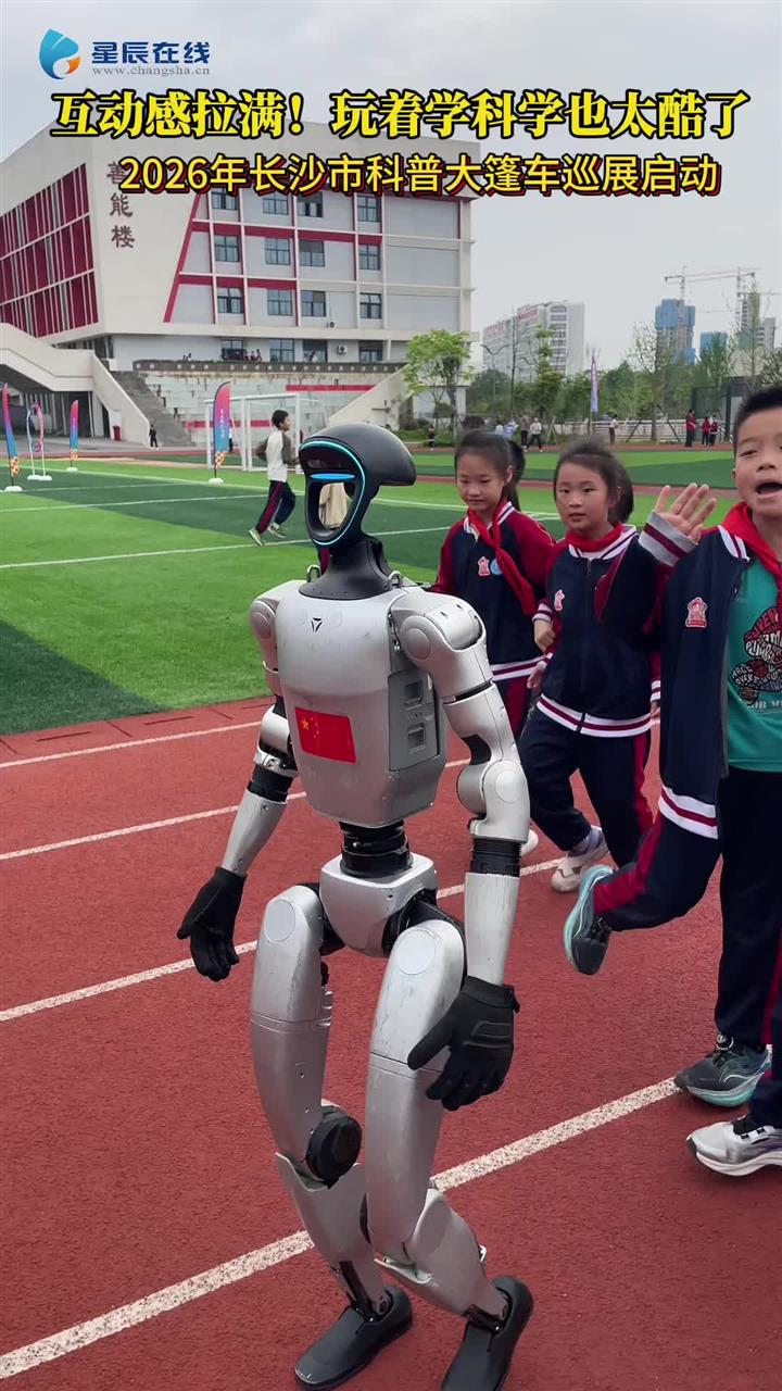 4月17日,2026年长沙市科普大篷车巡展启动仪式在湖南第一师范学院大泽湖学校举行。